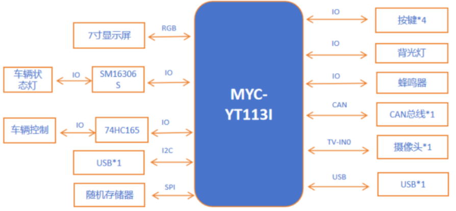 某头部农业机械企业企业采用 MYC-YT113i 替代原有 MCU 方案。利用CVBS摄像头接入和视频解码能力实现开机动画和倒车影像单芯片解决,降低bom成本;利用CAN 接口和ADC连接车辆传感器与诊断;且在 -40℃ 极寒环境下依然稳定运行。